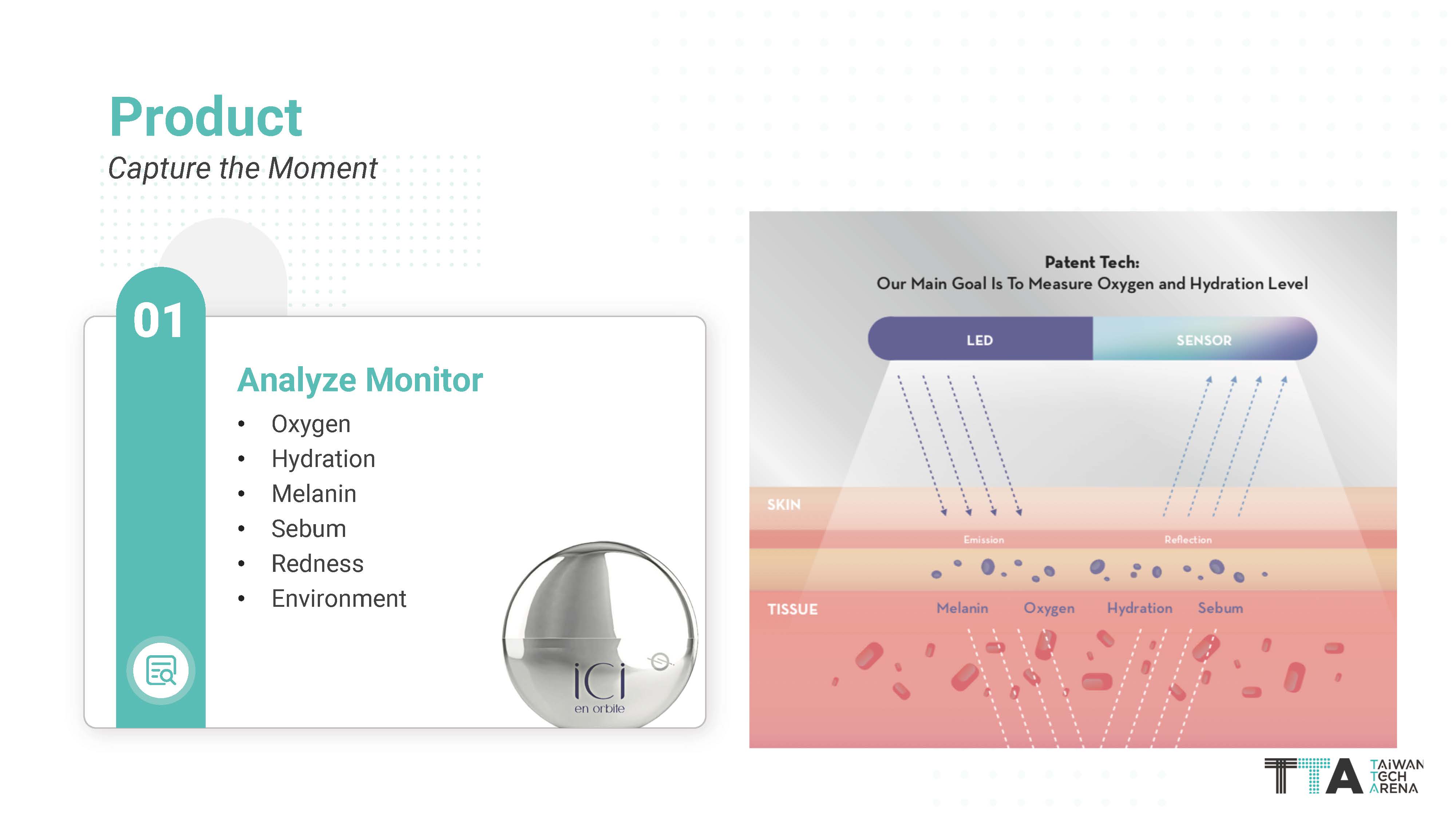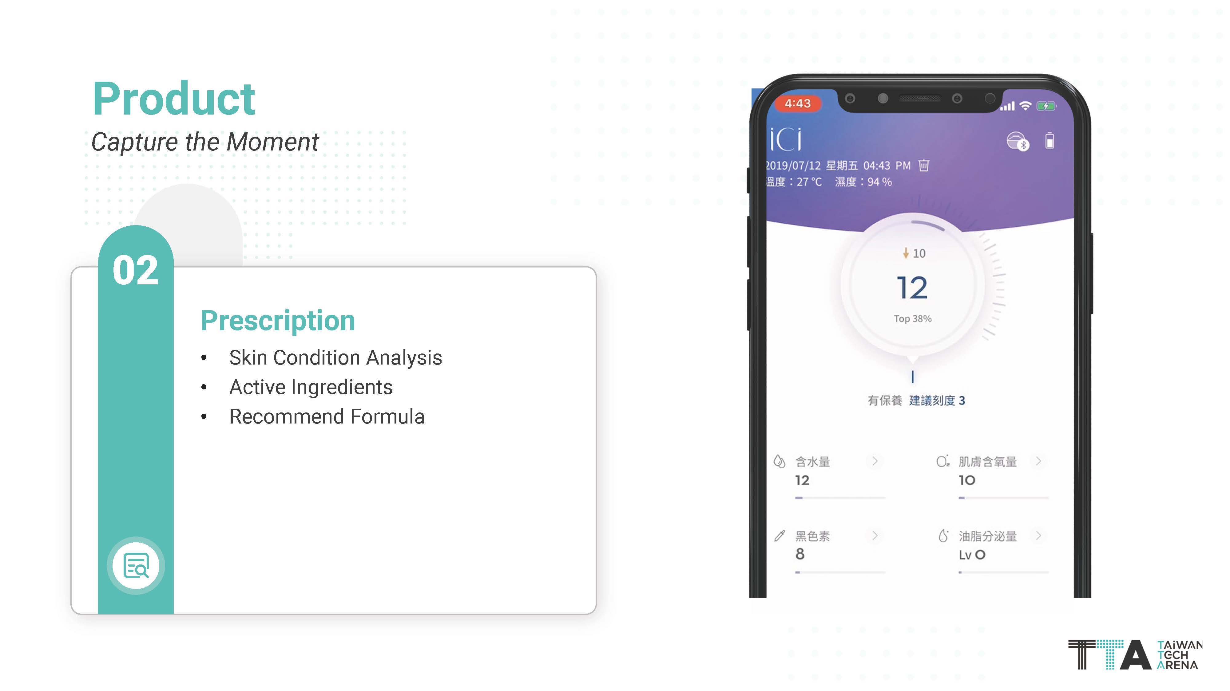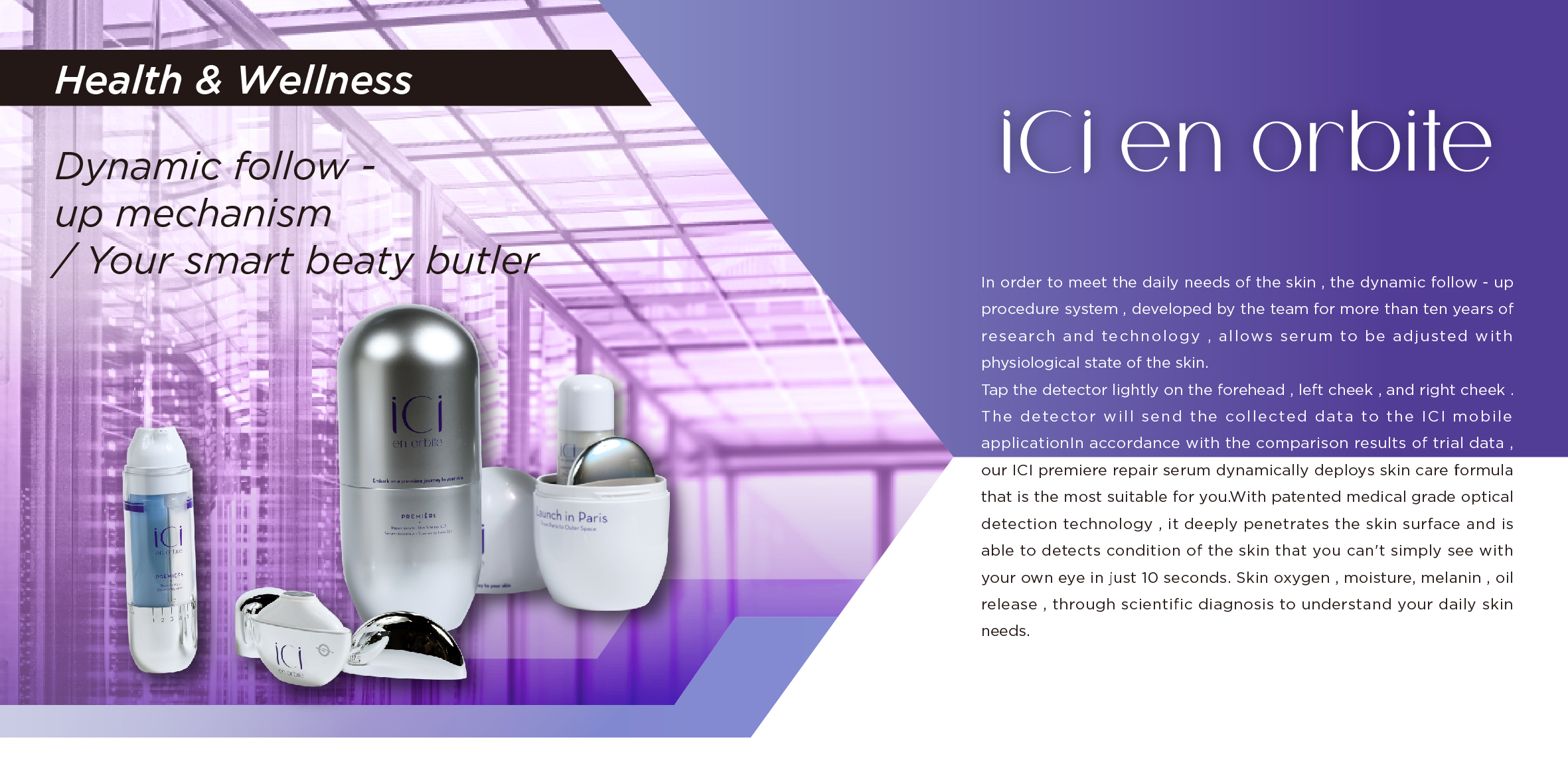 Tap the detector lightly on the forehead , left cheek , and right cheek . The detector will send the collected data to the ICI mobile applicationIn accordance with the comparison results of trial data , our ICI premiere repair serum dynamically deploys skin care formula that is the most suitable for you.With patented medical grade optical detection technology , it deeply penetrates the skin surface and is able to detects condition of the skin that you can't simply see with your own eye in just 10 seconds. Skin oxygen , moisture, melanin , oil release , through scientific diagnosis to understand your daily skin needs.