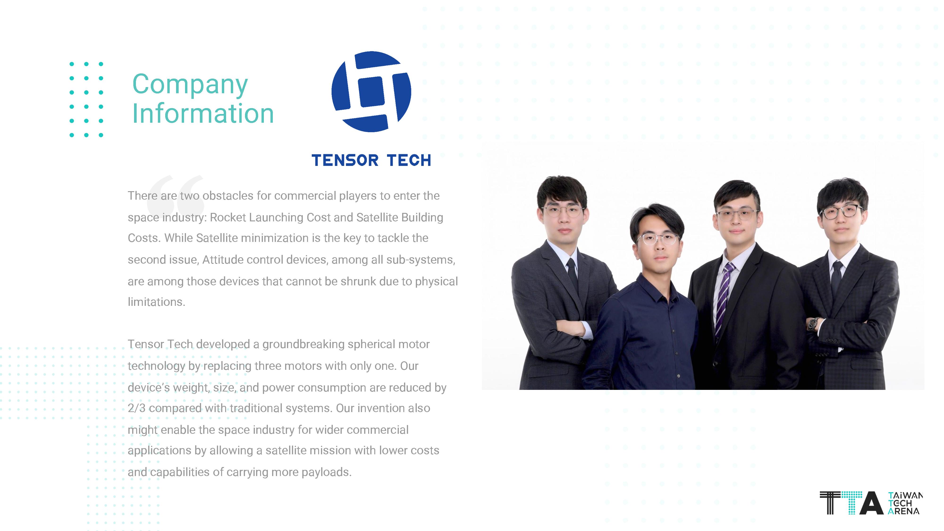 Tensor Tech developed a groundbreaking spherical motor technology by replacing three motors with only one. Our invention also might enable the space industry for wider commercial applications by allowing a satellite mission with lower costs and capabilities of carrying more payloads.
