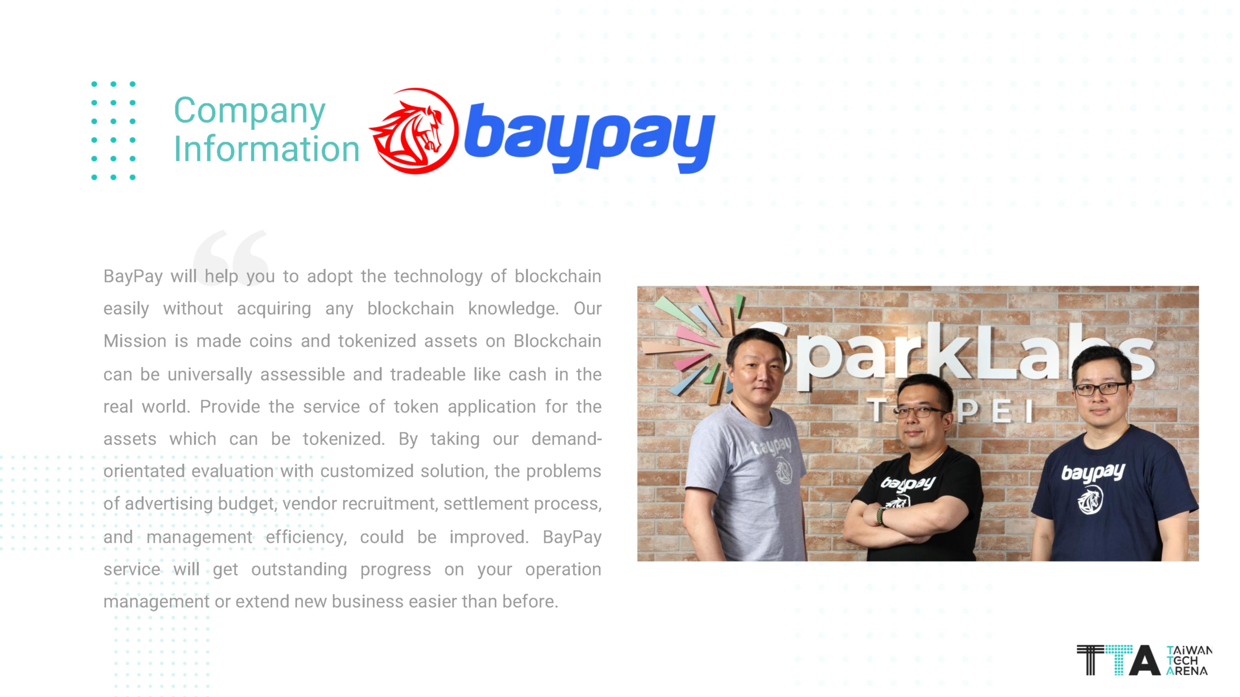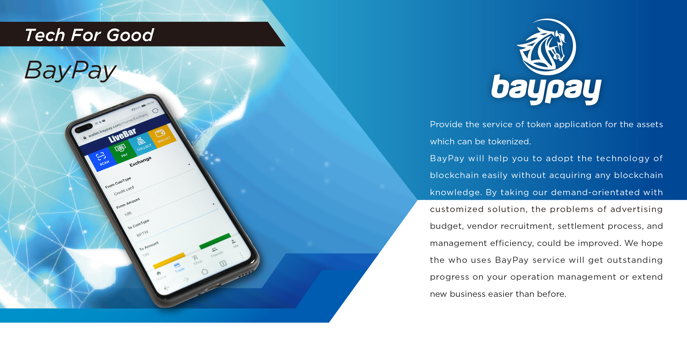 BayPay will help you to adopt the technology of blockchain easily without acquiring any blockchain knowledge. By taking our demand-orientated evaluation with customized solution, the problems of advertising budget, vendor recruitment, settlement process, and management efficiency, could be improved. We hope the who uses BayPay service will get outstanding progress on your operation management or extend new business easier than before.