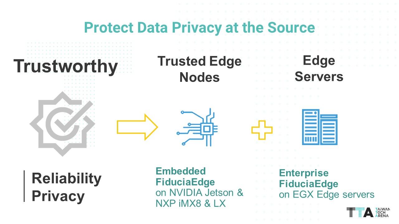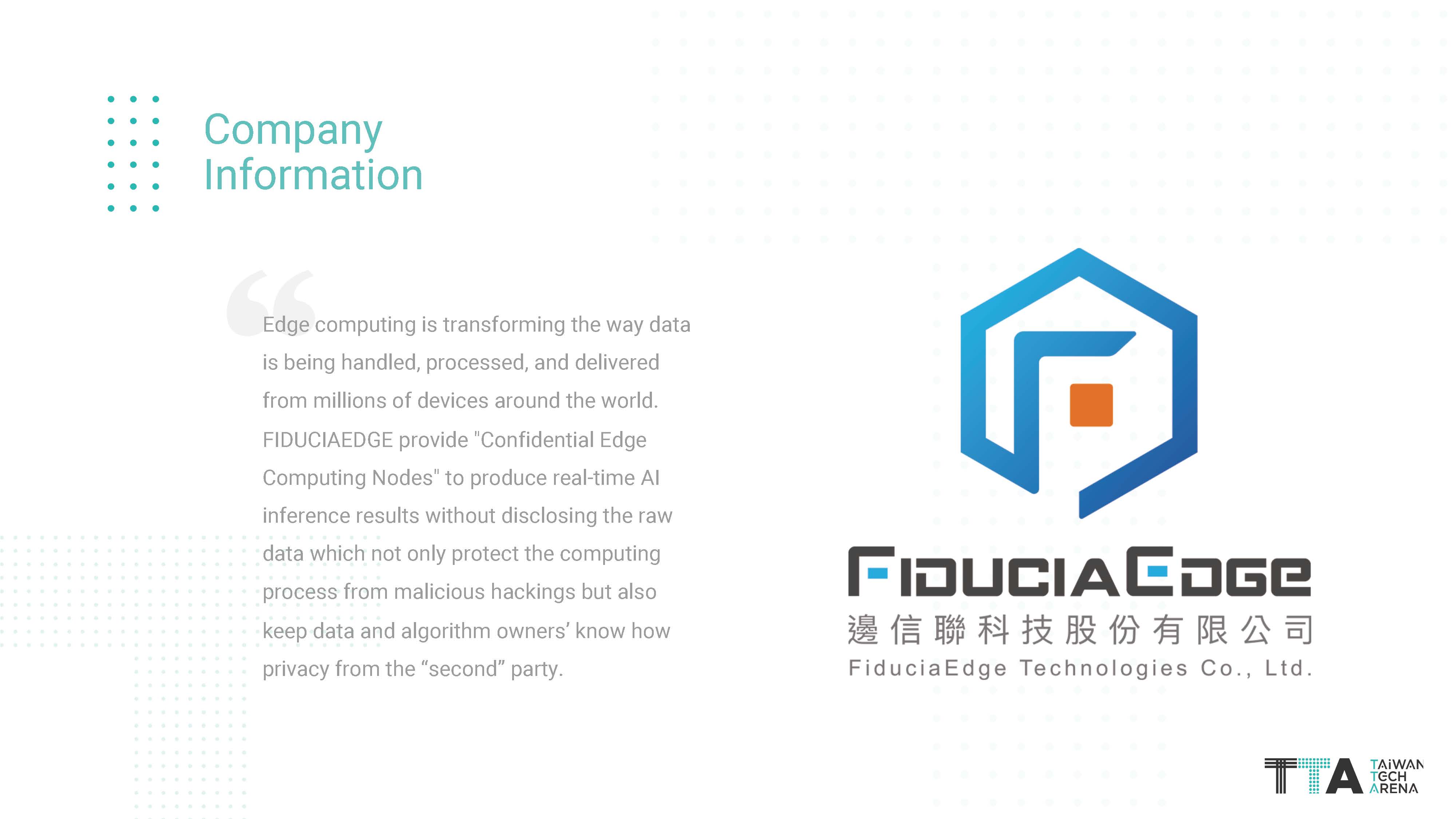 Edge computing is transforming the way data is being handled, processed, and delivered from millions of devices around the world. FIDUCIAEDGE provide "Confidential Edge Computing Nodes" to produce real-time AI inference results without disclosing the raw data which not only protect the computing process from malicious hackings but also keep data and algorithm owners’ know how privacy from the “second” party.