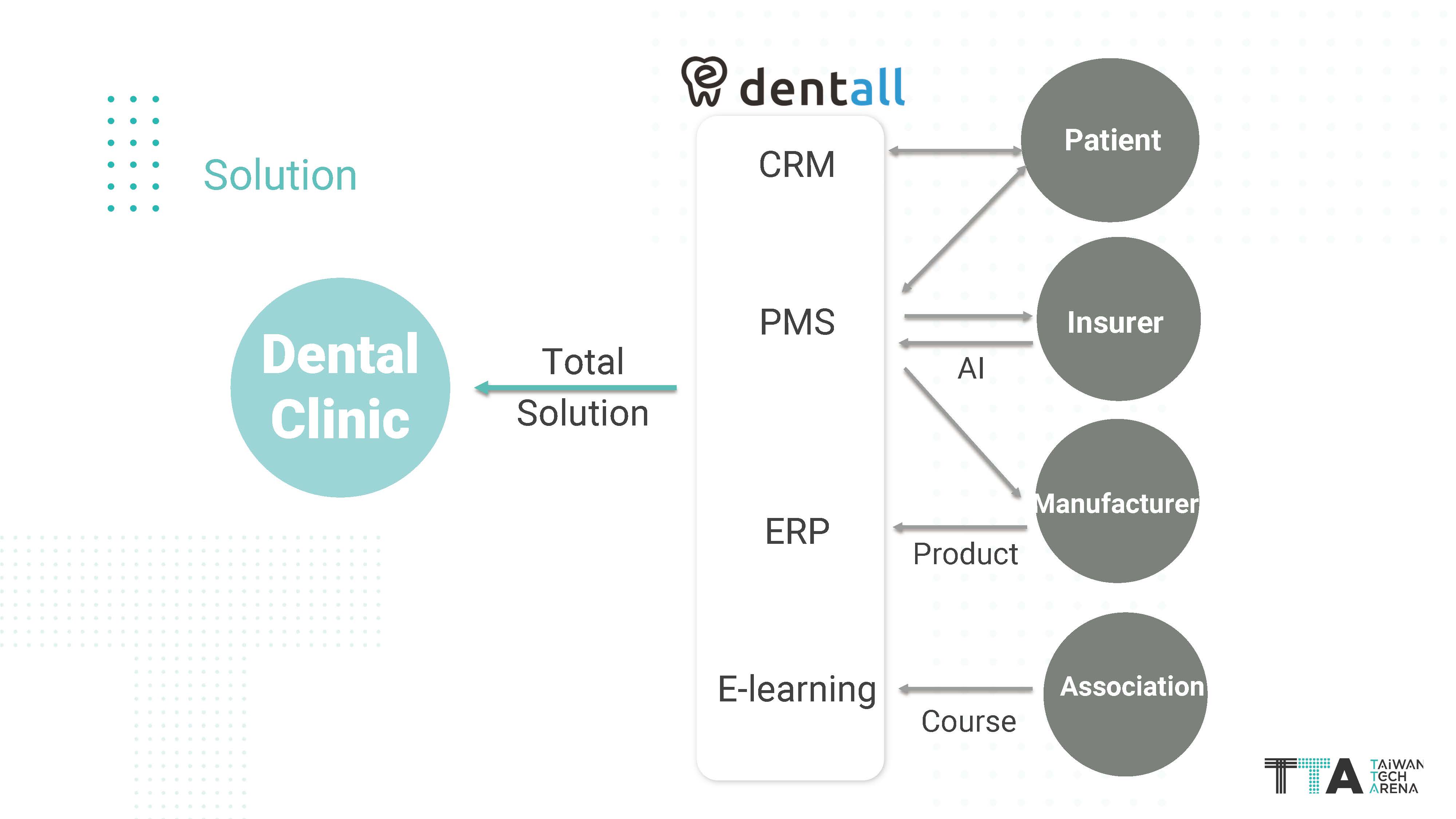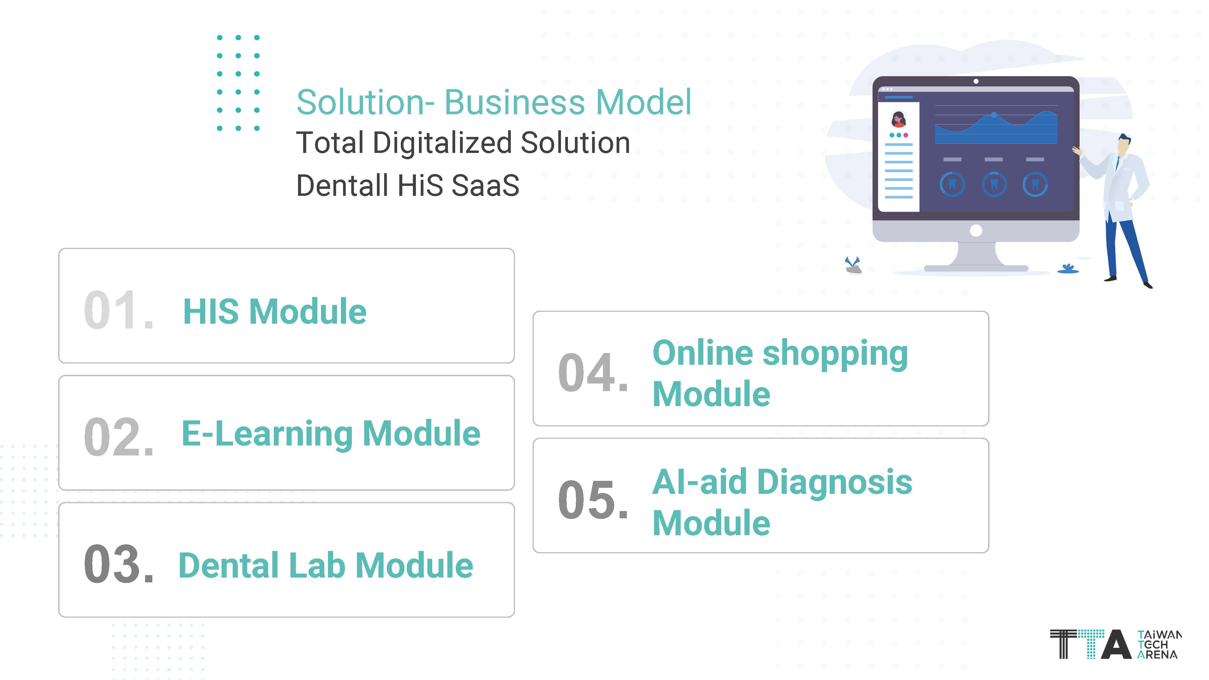 We provide total solutions for the dentists and the dental clinic’s daily practice and routine management. We intend to implement the software with multiple functions including ERP, CRM, billing and AI image sourcing technology into all the dental practice. And hopefully become the game changer of global dentistry.