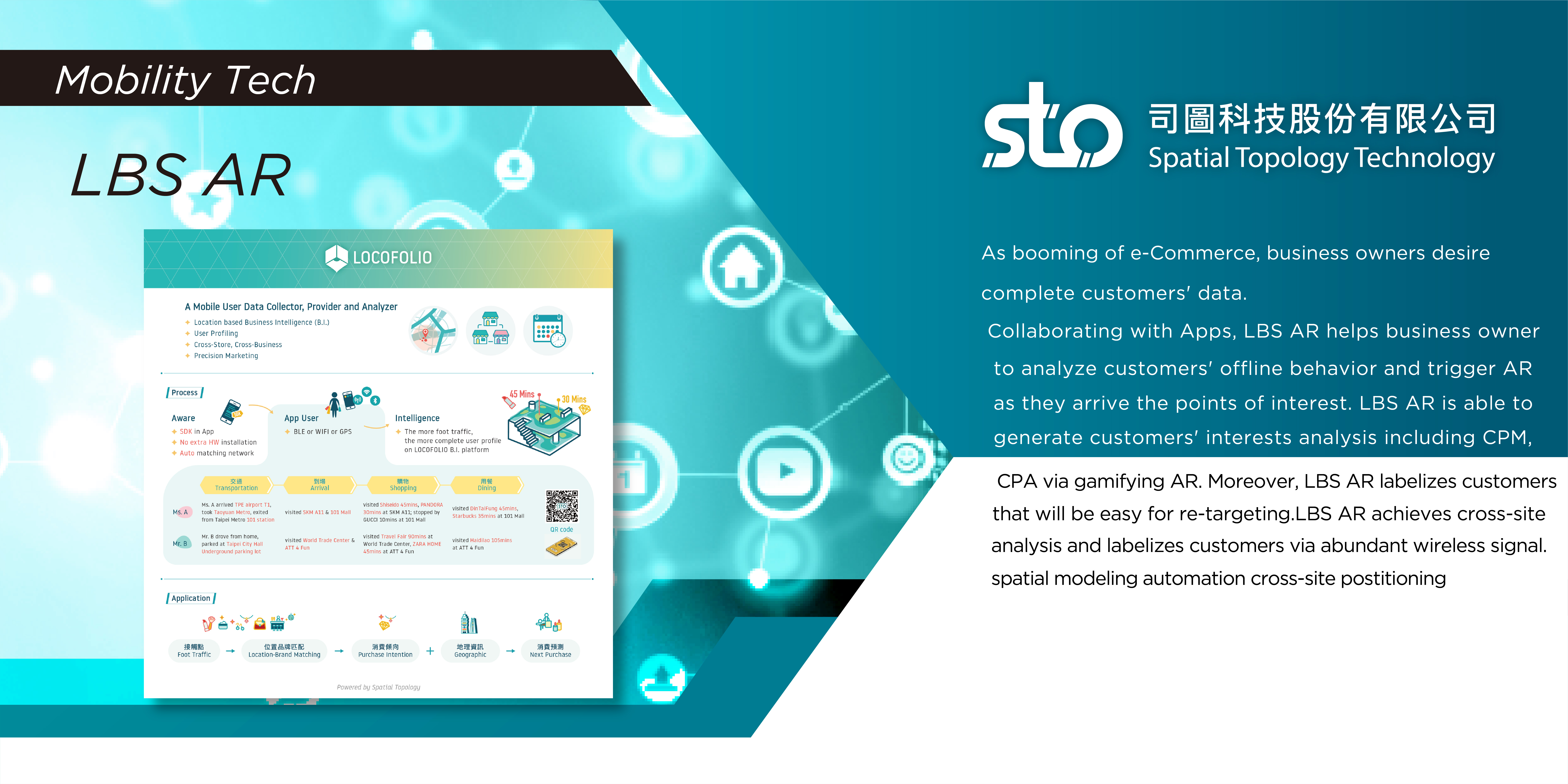 As booming of e-Commerce, business owners desire complete customers' data. Collaborating with Apps, LBS AR helps business owner to analyze customers' offline behavior and trigger AR as they arrive the points of interest. LBS AR is able to generate customers' interests analysis including CPM, CPA via gamifying AR. Moreover, LBS AR labelizes customers that will be easy for re-targeting.LBS AR achieves cross-site analysis and labelizes customers via abundant wireless signal.spatial modeling automation